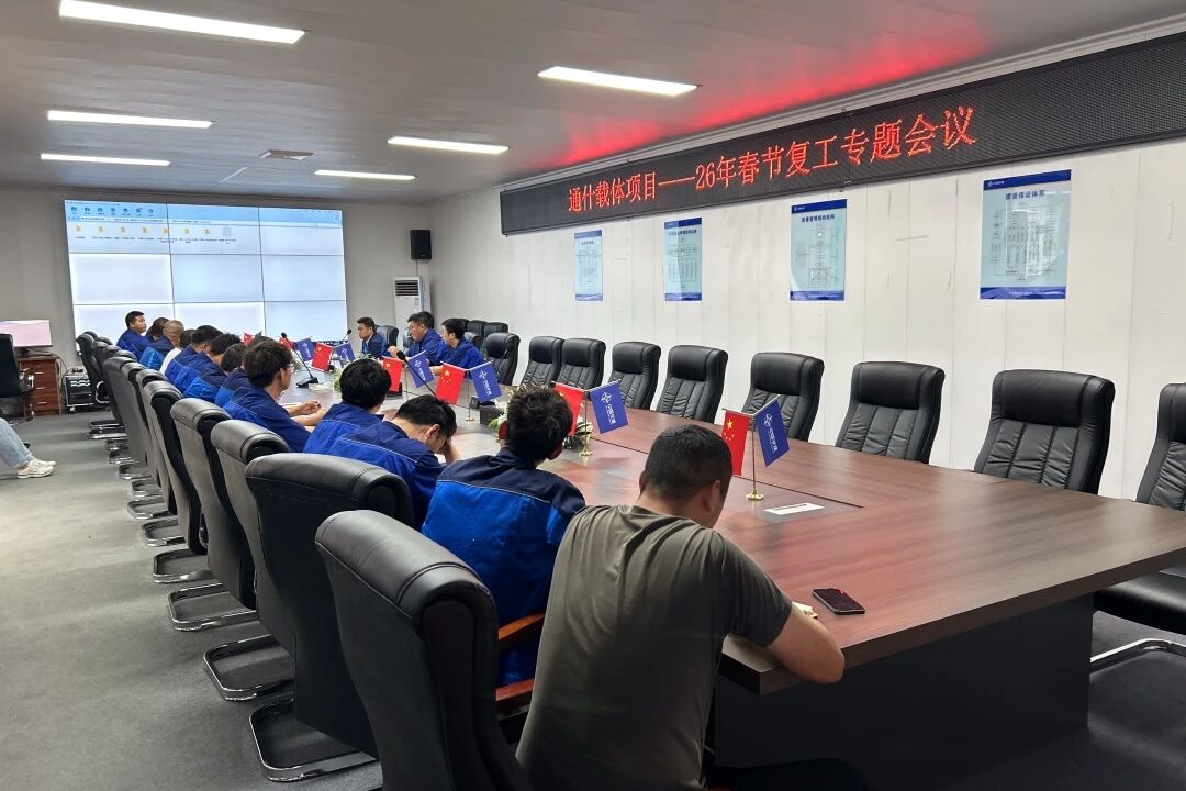 通什生态型城镇化项目扎实开展节后复工复产安全专项行动,项目负责人讲授“开工第一课”,开展项目重难点研讨,组织作业人员三级安全教育及全员安全交底,召开专题班前会,并严格开展安全条件验收,强化各类风险隐患排查整治,确保风险可控在控,为项目安全生产筑牢防线。