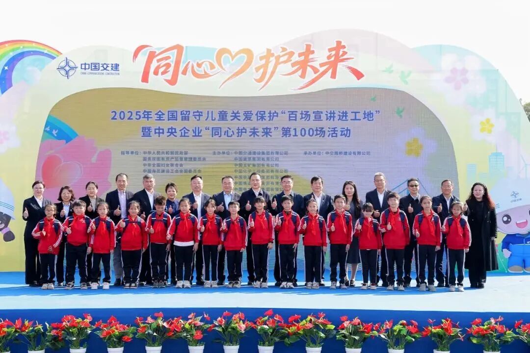 12月28日,由民政部、国务院国资委、全国妇女联合会、中国海员建设工会指导,中交集团工会联合会主办、中交路建承办的2025年全国留守儿童关爱保护“百场宣讲进工地”暨中央企业“同心护未来”第100场活动,在广东清花高速项目智慧梁场成功举办。国务院国资委社会责任局局长李军,中国海员建设工会主席、分党组书记李庆忠,中交集团党委副书记、工会主席刘翔出席活动并讲话。