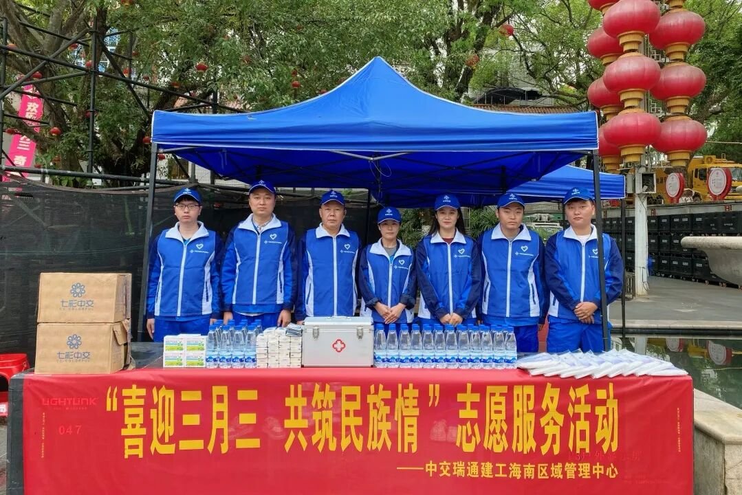 近日,2025年海南黎族苗族传统节日“三月三”活动在五指山市正式拉开帷幕,中交路建五指山片区项目开展“喜迎三月三·共筑民族情”志愿服务活动。志愿者们为游客们配备了急救箱、饮用水、纸巾、湿巾、一次性雨衣等物资,耐心引导车辆停放,对附近区域垃圾进行清理,展现出了高度的社会责任感和专业素养,彰显了中交青年担当。