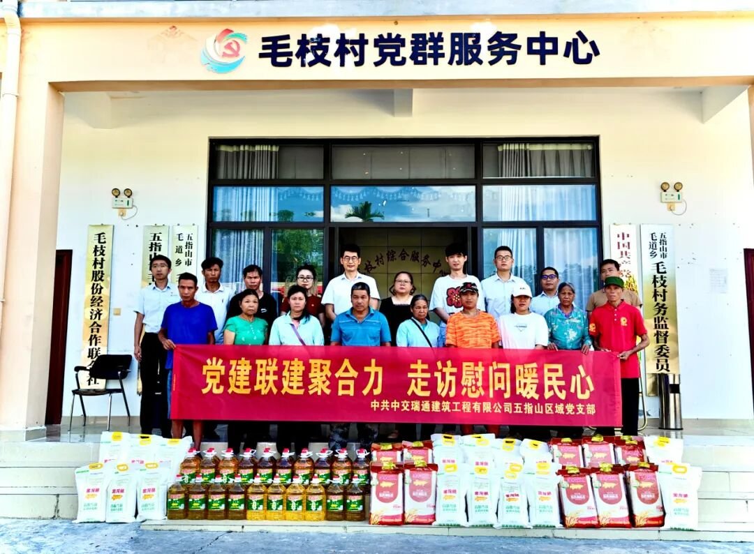 近日,中交路建瑞通建工五指山区域党支部开展“党建联建聚合力·走访慰问暖民心”活动,组织党员干部、志愿者走进五指山市毛阳镇毛枝村,与常务副乡长、村委会成员、老党员及贫困家庭代表进行座谈交流。五指山区域党员干部详细了解了村民们的生活状况,走访困难残疾人家庭,认真倾听大家的困难与需求,送上米、面、油等生活物资,展现了央企责任担当。